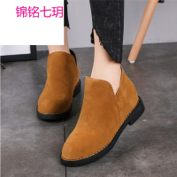 锦铭七玥2017新款春秋女靴子马丁靴单款磨砂皮牛皮裸靴切尔西短靴厂