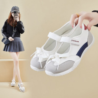 SUNTEK帆布休闲鞋女2023夏季新款圆头魔术贴薄款透气平底运动板鞋