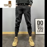 YANXU2023秋季款裤子男士卡其色休闲裤潮流弹力显瘦小脚裤男士黑色长裤