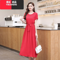 YIBUSHENG高端气质中年女士季棉绸连衣裙大码宽松显瘦妈妈装中长款裙子