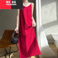 YIBUSHENG季吊带裙长裙冰丝褶皱吊带连衣裙旅游度假海边纯色白裙子打底裙