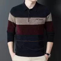 恒源祥中年男士长袖T恤秋季男装薄款翻领含羊毛针织体恤衫爸爸装