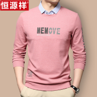 恒源祥长袖T恤男士春秋新款休闲圆领字母中年假两件衬衫领爸爸装