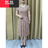 YIBUSHENG妈妈装季中长款短袖碎花连衣裙新款中老年女装洋气弹力冰丝裙子
