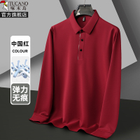 啄木鸟2025春秋季新款商务休闲长袖polo衫男士中年翻领上衣服
