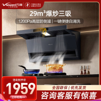 万和(Vanward)[小双翼V9L Plus·纳米抗污面板]顶侧三吸抽排油烟机29风量家用大吸力烟灶联动超薄0嵌配曜石