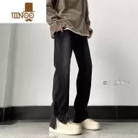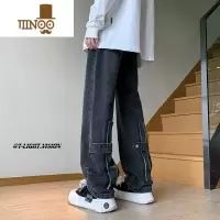 YANXU微喇拉链开叉黄泥牛仔裤男款秋季美式高街潮牌设计感直筒休闲裤子