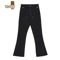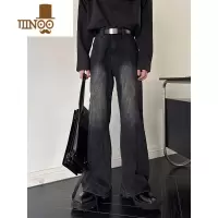 YANXUMILK 美式微喇叭黑色牛仔裤拼接修身休闲拖地长裤男女2023秋季