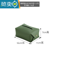 敬平北欧复古pu纯色现代纸巾盒家用简约纸巾套卫生间防水大抽纸盒 橄榄绿-小号