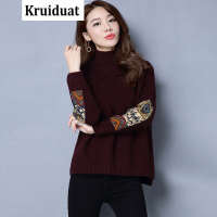 Kruidvat2017春季新款女装套头毛衣贴布短款针织衫加厚大码半高领打底衫M9驼色均码