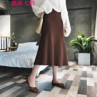 锦铭七玥2018春装新款针织裙韩版女装半身裙高腰A字裙大码显瘦黑色