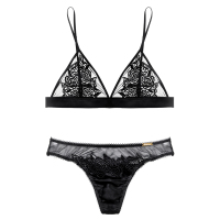 刺绣蕾丝透视性感三角杯文胸丁字裤T套装无钢圈薄杯女士内衣