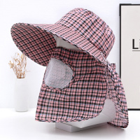 春夏新款格子防晒帽女骑车护颈透气面罩披肩帽干农活采茶帽遮阳帽