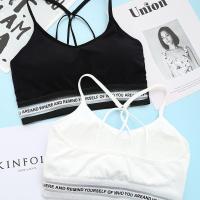简约针织字母吊带短款美背背心潮薄款带胸垫文胸无钢圈抹胸细肩带
