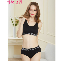 锦铭七玥新款pink运动内衣套装无缝工字背抹胸大码pink字母套装内裤女