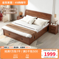 全友家居新中式双人床高箱储物床橡胶木实木边框卧室床双人大床1.5米/1.8米可选