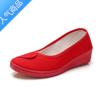 SUNTEK牌护士鞋白色布鞋坡跟红色帆布鞋女鞋小白鞋医院美容院工作鞋