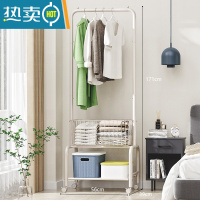 敬平双层衣帽架落地卧室内不锈钢晒衣架阳台挂衣架家用单杆晾衣架带轮 双层 长150高165带轮