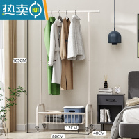 敬平挂衣架落地卧室房间挂衣服架子单杆式家用移动晾衣架衣帽架北欧风 珍珠白[带篮子]-长80X宽40X高165CM