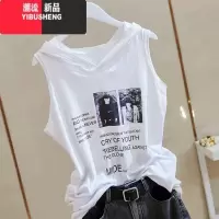 YIBUSHENG2024新款打底纯白色连帽背心女弹力宽松竹节棉外穿吊带无袖T恤