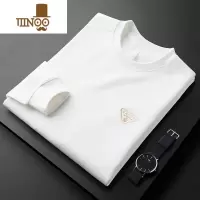 YANXU轻奢级秋季薄款新疆长绒棉白色长袖卫衣男修身圆领半袖t恤上衣男
