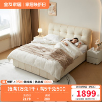 全友家居奶油风单人落地储物床2024新款卧室小户型真皮床