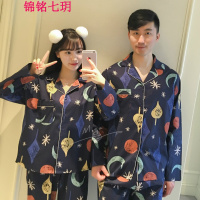 锦铭七玥宇宙星空情侣睡衣套装 韩版星星月亮涂鸦全棉印花居服 长袖长裤