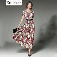 Kruidvat2017季新款女装波西米亚大摆裙气质短袖长裙高腰碎花蕾丝连衣裙YQ