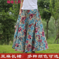 锦铭七玥厂18春秋季新款女装波西米亚大摆裙子棉麻长裙印花