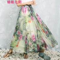 锦铭七玥雪纺半身裙2018夏季新品女装 印花雪纺半身裙波西米亚大摆裙