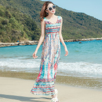 夏季新款海边度假印花显瘦连衣裙春夏波西米亚长裙雪纺沙滩裙