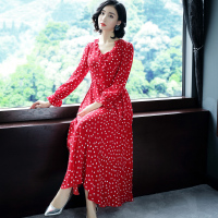 真丝连衣裙女长裙2018春夏新款波西米亚100%桑蚕丝碎花长袖连衣裙