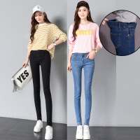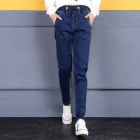 加绒加厚牛仔裤女松紧腰长裤学生哈伦裤松紧带裤子女