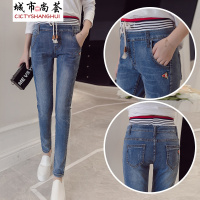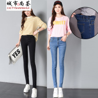 新款牛仔裤女松紧腰长裤女中腰弹力小脚女裤潮