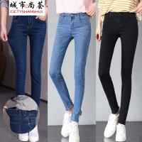 女裤冬款加绒弹力牛仔裤女松紧腰长裤女加厚保暖铅笔裤