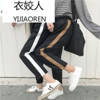 衣姣人(YIJIAOREN)女装新款加厚鹿绒长裤女松紧腰系带侧面撞色萝卜裤学院风