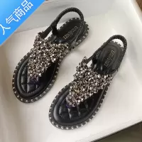 SUNTEK夹趾凉鞋女夏时尚外穿2023新款水钻平底罗马夹脚女凉拖大码41一43