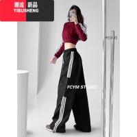 YIBUSHENG美式工装裤女小个子jazz舞复古潮牌直筒阔腿休闲裤宽松条纹运动裤