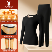 浪莎保暖内衣女士加绒加厚秋衣秋裤套装修身美体防寒显瘦内穿打底衫 黑色套装 加绒加厚