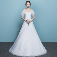 婚纱礼服2017新款一字肩韩版公主显瘦大码新娘结婚蕾丝秋冬季婚纱