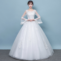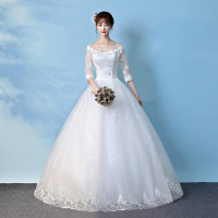 婚纱礼服2017新款韩版公主新娘结婚一字肩中袖蕾丝显瘦齐地秋冬季