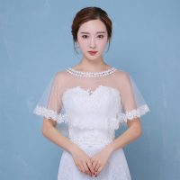 新娘披肩韩版加大码婚纱披肩镶钻白色春夏秋季薄款纱斗篷蕾丝披肩