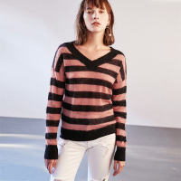 年轻橡皮红条纹轻奢马海毛羊毛条纹毛衫W20812