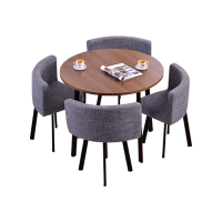 中豫鑫泽ZYXZ4100952 简约接待桌椅洽谈桌椅 一桌四椅 胡桃圆桌灰色布椅