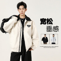 男装美式复古PU皮夹克男宽松棕色美拉德皮衣潮牌痞帅机车服外套男