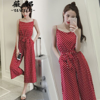 薇侣2018夏度假沙滩裙裤吊带连体裤女春阔腿裤九分雪纺