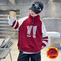 儿童装男童加绒卫衣秋冬款新款红色过年男孩加厚冬季立领上衣