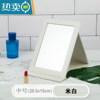 敬平高清PU皮革台式学生女生宿舍公主梳妆便携随身折叠化妆镜子大小号 中号 米白(镜面加厚)便携式用镜