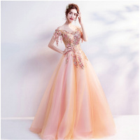 宴会晚礼服2018新款新娘结婚敬酒服时尚年会演出服个性蓬蓬裙183橘粉色