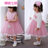 锦铭七玥2017宝宝粉色礼服套装满月周岁婴儿蕾丝公主裙童婚纱裙连衣裙